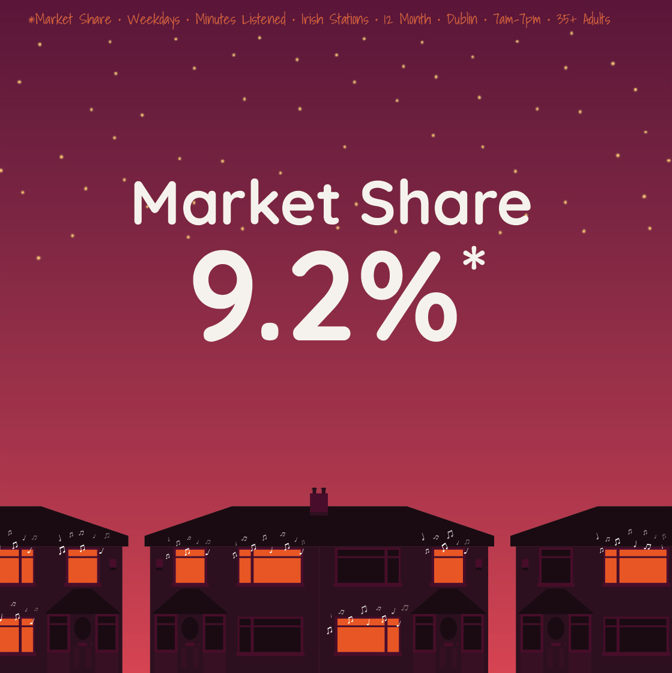 Sunshine 106.8: #1 Music Station in Dublin for 35+ Adults (Share of listening / Market Share data 7a-7p M-F)